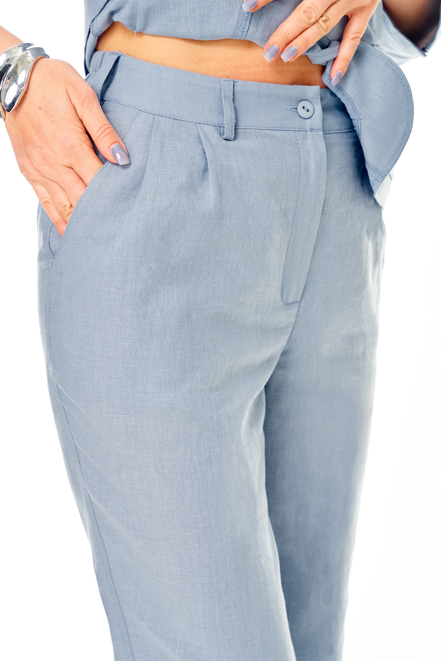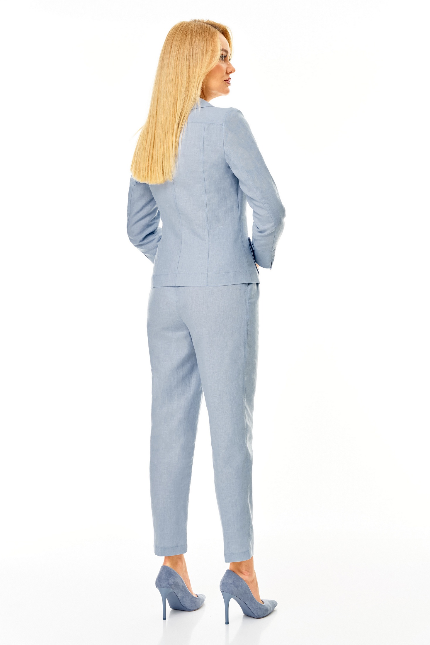 Костюм брючный 2848-1 голубой DOGGI — идеальное сочетание стиля и комфорта. Коллекция бренда DOGGI предлагает элегантный брючный костюм из натуральной льняной ткани. Жакет полуприлегающего кроя с застежкой на 3 пуговицы и функциональными накладными карманами подчеркнет вашу индивидуальность. Рукав три четверти с отворотом добавляет легкости образу. Свободные брюки со средней посадкой и молнией спереди обеспечат максимальный комфорт. Стиль костюма можно описать как классический, что делает его отличным выбором для офисного гардероба или деловых встреч. Голубой цвет добавляет свежести и изысканности вашему облику. Материал из льна и вискозы гарантирует приятные ощущения на коже, особенно в тёплое время года.