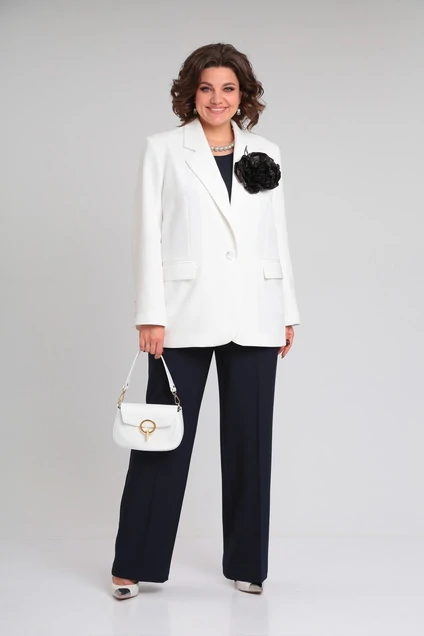 *Костюм брючный 2969 молочный + белый Ladysecret