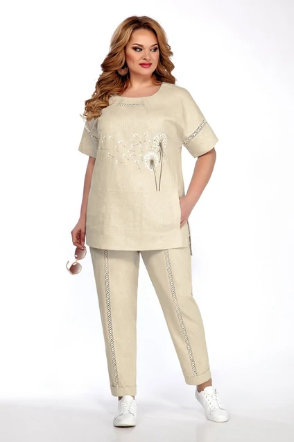Костюм брючный 11378 льняной с одуванчиками LaKona