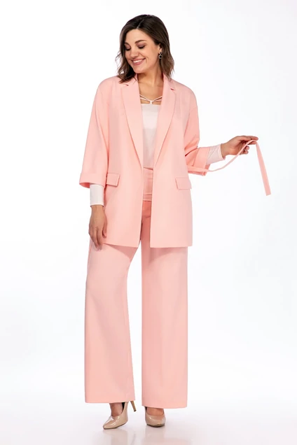 Длина жакета сзади по спинке 77 см, длина рукава 49 см. Длина брюк по боковому шву 108 см.