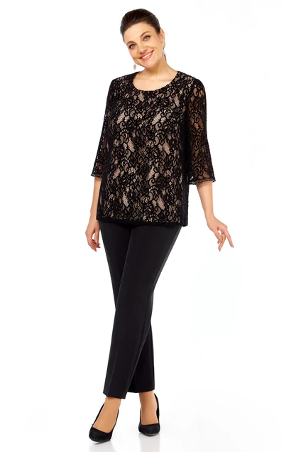 Свободная туника средней длины из роскошного бархатного кружева. Рукав ¾ украшен изящной кружевной тесьмой, подчеркивающей детальность модели. Туника на подкладке, что обеспечивает идеальную посадку по фигуре и гарантирует непросвечиваемость.