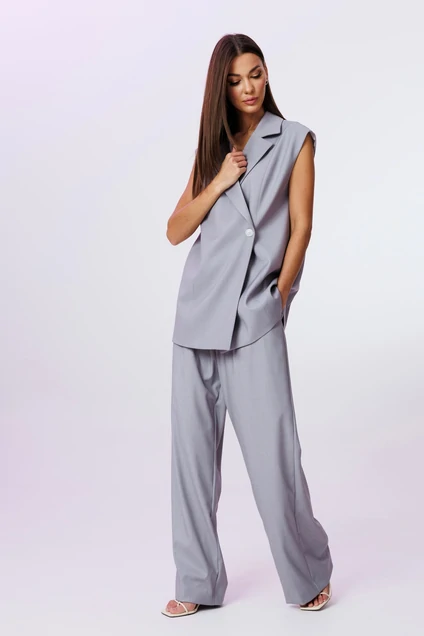Стильный гармоничный комплект, состоящий из двубортного жилета и свободных брюк в стиле палаццо.