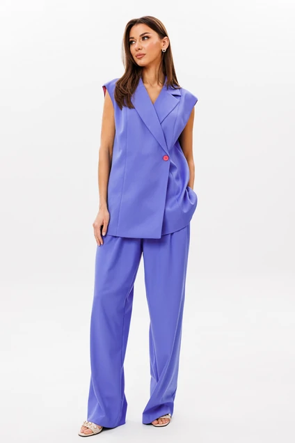 Стильный гармоничный комплект, состоящий из двубортного жилета и свободных брюк в стиле палаццо.