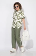 Костюм: туника+брюки. Стильный летний костюм, состоящий из удлиненной туники свободного покроя и брюк. Оригинальная туника из вискозы добавлением льна. Модель с цельнокроеным укороченным рукавом и ассиметричным подрезом по полочке. Модель с легким капюшоном и кулисой на шнуровке. Низ изделия разноуровневый. Спинка цельная. В комплекте свободные брючки, завышенной посадки. Брюки на притачном поясе с круговой резинкой. Имеются боковые карманы. Низ с заложенными складками, что придает изделию более спортивный образ. Длина туники по спинке - 68 см, рукав – около 30 см. Брюки – 100 см.
