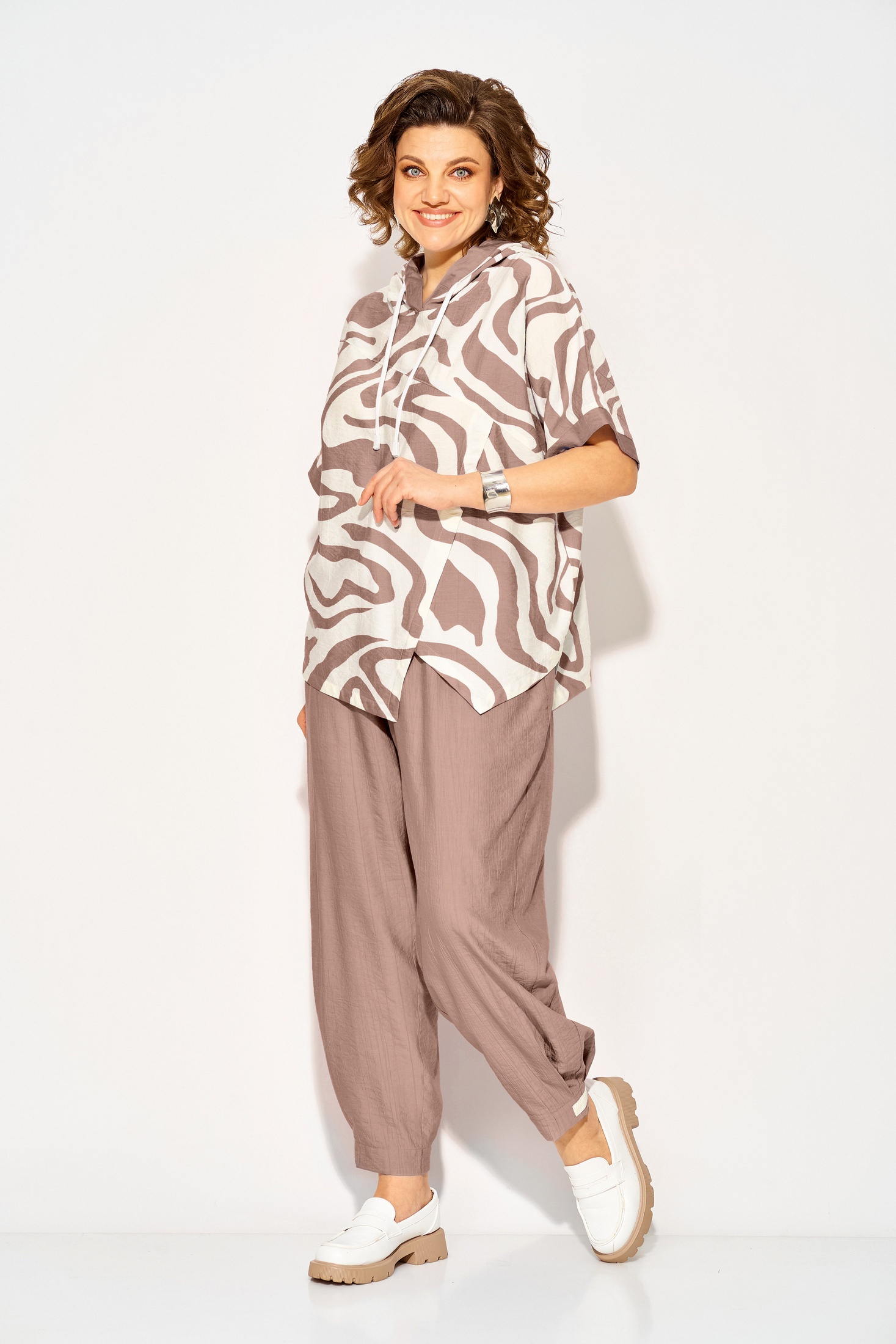 Костюм брючный 1438л капучино Liliana-style — изысканный выбор для теплого сезона. Коллекция бренда Liliana-style предлагает стильный летний костюм из вискозы и льна, который обеспечивает комфорт и естественную вентиляцию. Удлиненная туника свободного покроя с ассиметричным подрезом по полочке и легким капюшоном дополнена кулисой на шнуровке. Модель имеет разноуровневый низ и цельную спинку. Брюки с завышенной посадкой на притачном поясе и круговой резинке оснащены боковыми карманами. Низ брюк дополняют заложенные складки для придания более спортивного стиля. Длина туники по спинке составляет 68 см, а брюк — 98-100 см, что делает комплект идеальным для прогулок и повседневного ношения в летний период. Цвет капучино придаст вашему образу натуральность и свежесть.