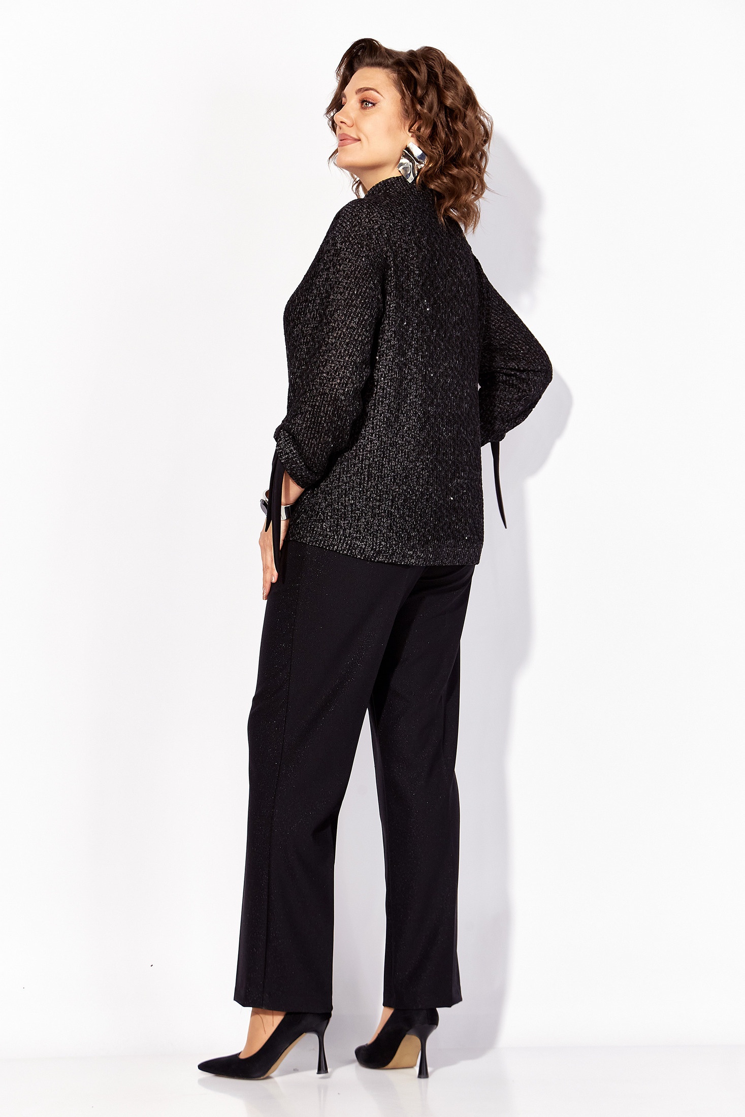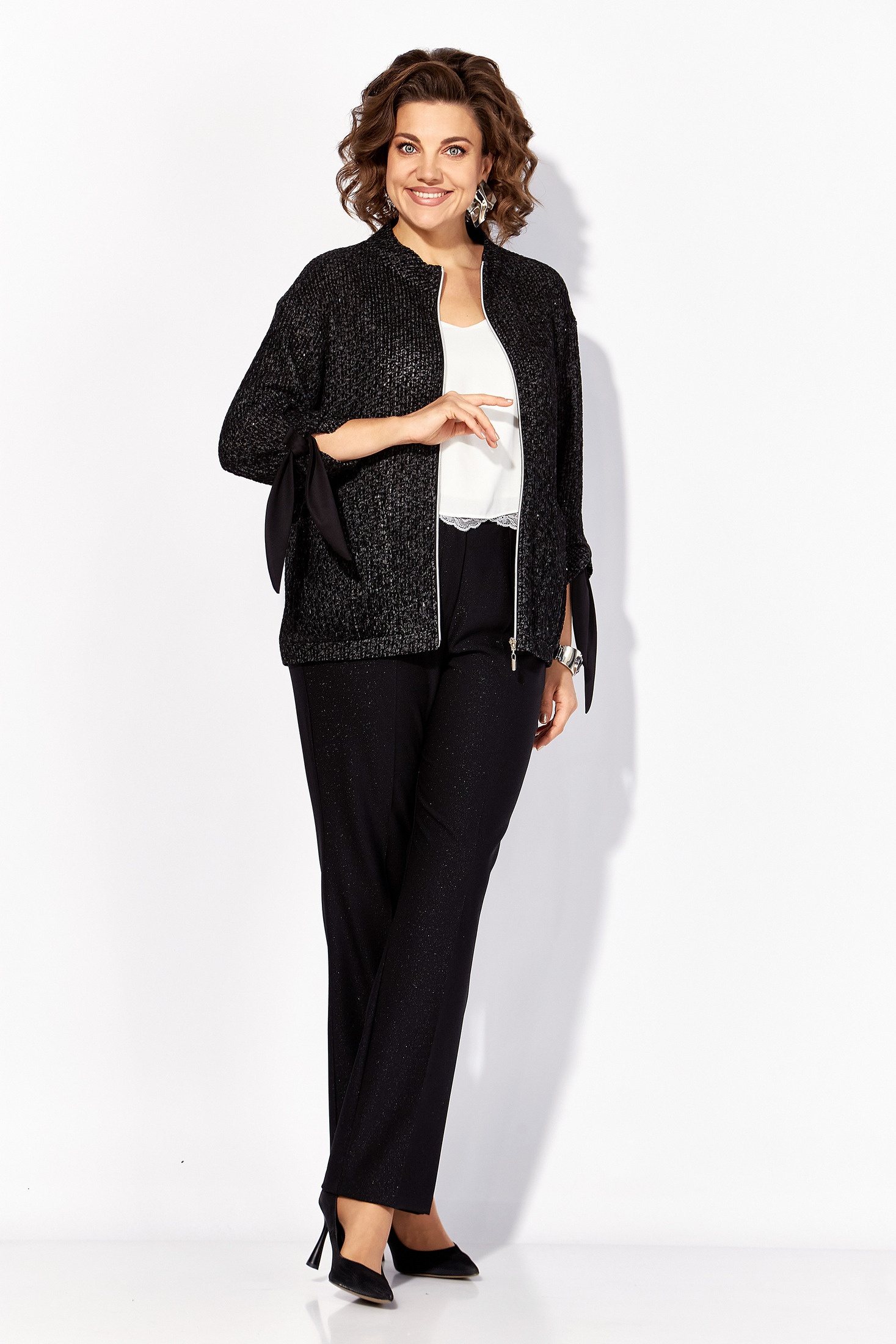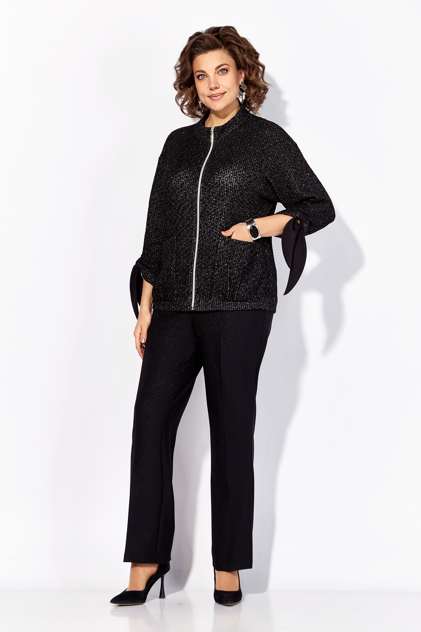 Эффектный, нарядный облегченный жакет, выполнен из вязанного трикотажа с эффектом легкого мерцания. Модель свободного силуэта, с рукавом длиной ¾-ти на спущенном плечевом поясе. Горловина обработана полулежащей стойкой. Застежка центральная на молнию. По полочке расположены аккуратные накладные карманы. Низ изделия оформлен притачной планкой. Изюминкой данной моделям служит необычные паты по рукаву с завязкой в виде банта. Этот вязанный трикотажный жакет - идеальный вариант для создания стильного и привлекательного романтического образа! Мягкий и нежный материал делает его очень приятным на ощупь, теплым и уютным, а легкое мерцание придает свою изюминку. Отлично сочетается с классическими прямыми брюками из базовой коллекции от бренда Лилиана! Длина – по спинке –70 см., рукав – 55 см.