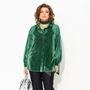Трендовая блузка из легкой сетчатой ткани c эффектом мерцания станет стильным дополнением вашего гардероба. Ее можно комбинировать с различными элементами гардероба, накинуть поверх платья или топа. Модель выполнена с воротником-стойкой, который добавляет элегантности образу. Застежка центральная на петли и пуговицы. По бокам расположены разрезы. Свободный крой обеспечивает комфорт и подчеркивает женственность. Длинный рукав с манжетами делает ее универсальной для любого сезона, а удлиненный силуэт добавляет изысканности. В комплект входит съёмный пояс с декоративной бахромой, который может служить в виде шарфика и добавить элегантность образу.