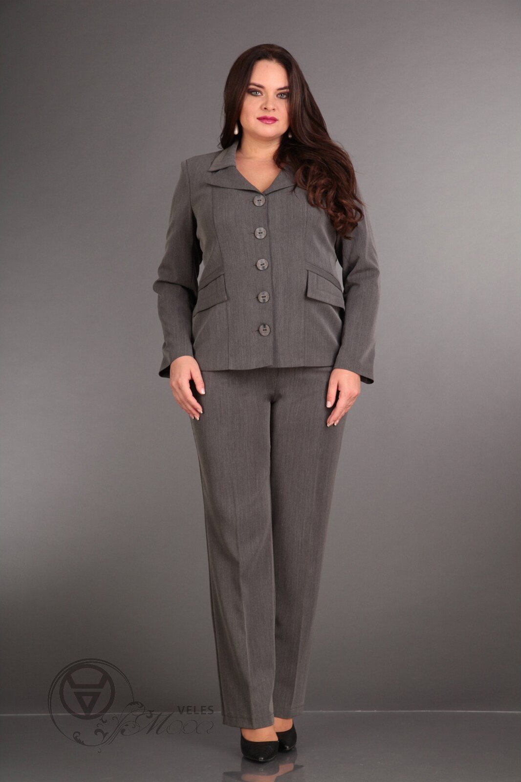 Описание: Жакет: по переду рельефные швы, на бочках отделочные клапаны, спинка с рельефами и средним швом. Рукава двухшовные втачные. На подкладке. Брюки: классического покроя. На задних половинках брюк две отделочные листочки. Верх обработан притачным поясом, по бокам пояса резинка, застёжка брюк спереди на молнию.