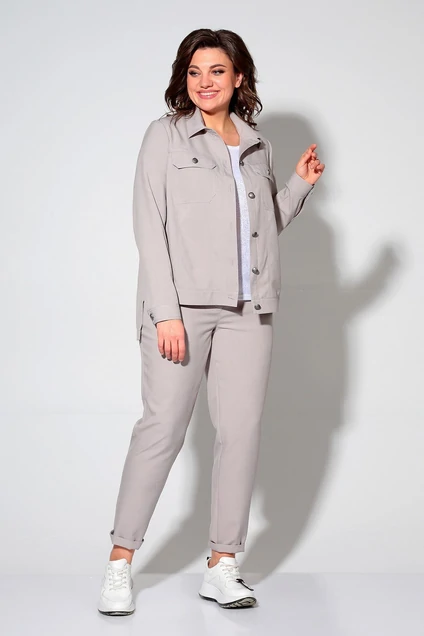 Куртка свободного кроя. Рукав втачной двух-шовный, низ рукава на притачной манжете с застёжкой на петлю и пуговицу. Воротник рубашечного типа на отрезной стойке. По переду накладные функциональные карманы с клапаном. По спинке отрезная кокетка. Спинка куртки длиннее чем перед. Брюки зауженные к низу. Верхний край брюк на притачном поясе, по спинке от боковых швов на резинке. Застежка брюк спереди по типу «гульфик». На задних половинках брюк накладные карманы, спереди карманы «хулиганы».