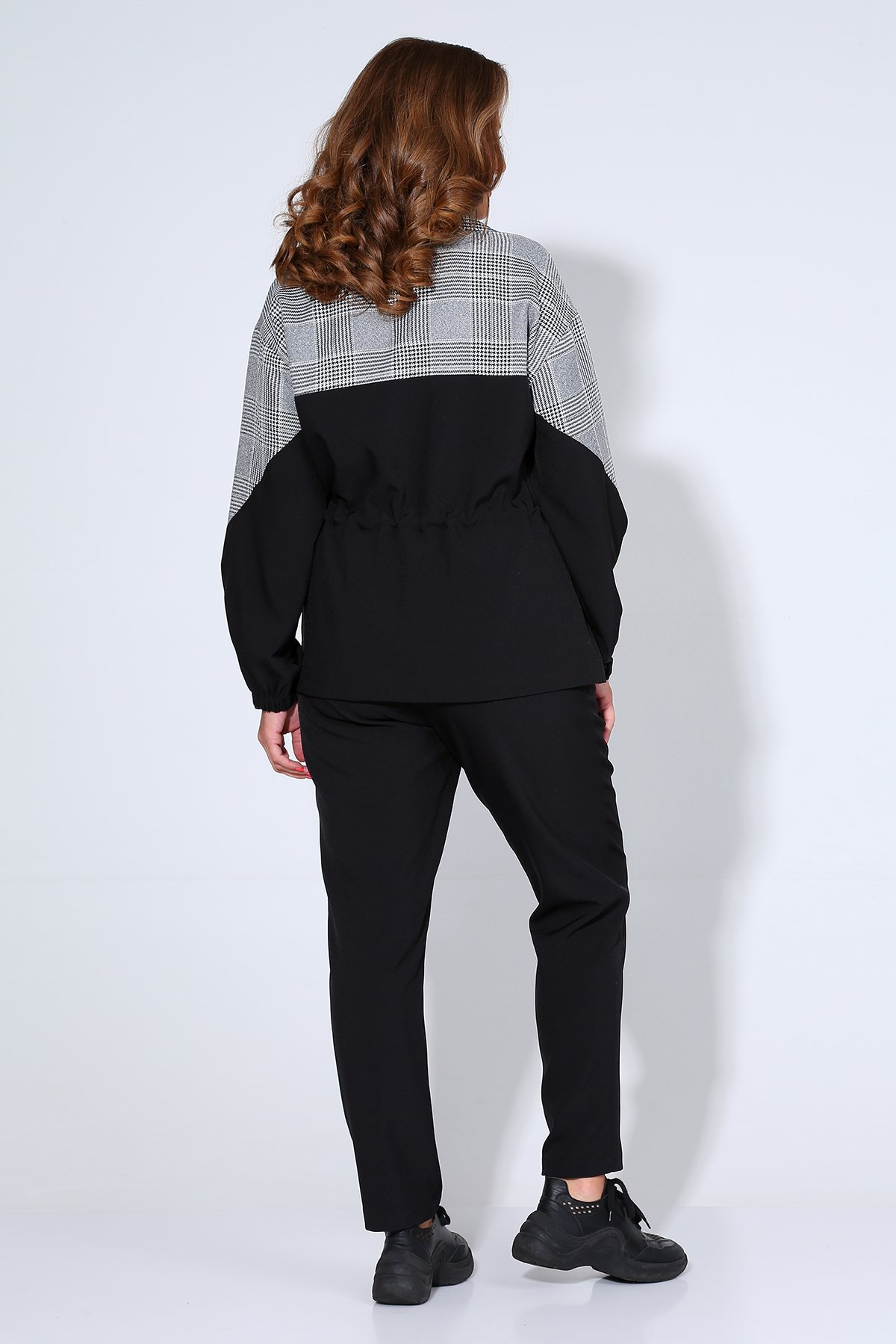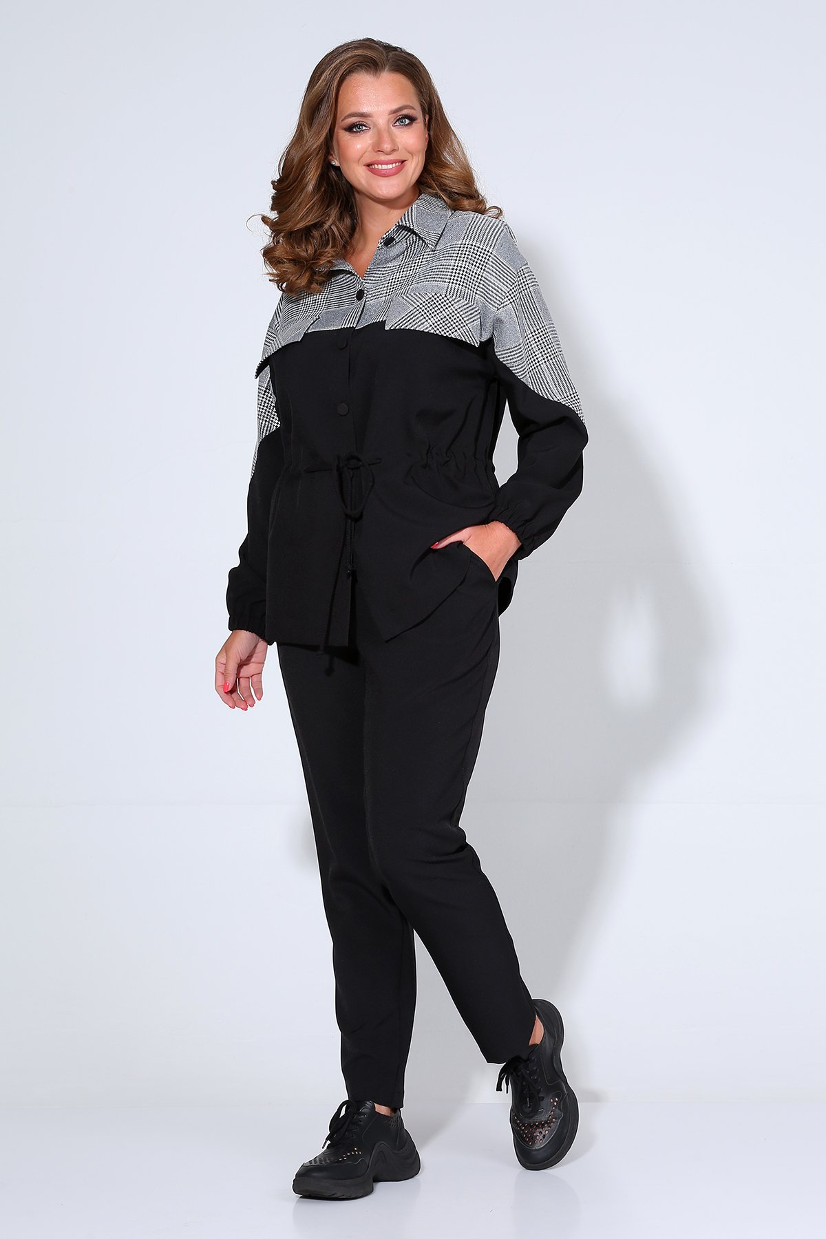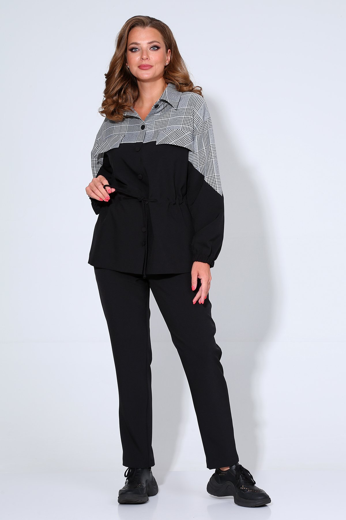 Рубашка с отложным рубашечным воротником на стойке, застежка центральная на петли и пуговицы. Рукав отрезной со спущенной линией плеча. На уровне линии талии кулиса с декоративным шнуром. Низ рукава собран на эластичную тесьму. Брюки к низу заужены. На передних половинках брюк боковые карманы «хулиганы». Верхний срез брюк на притачном поясе на резинке с тесьмой из основной ткани.