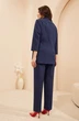 Жакет со стояче-отложным воротником пиджачного типа и центральной застёжкой на петлю и пуговицу. Перед с фигурным низом, карманом с листочкой в нижней части и карманом в шве. Спинка со средним швом и талиевыми вытачками. Рукава втачные. Изделие на подкладке. Блуза с фигурным вырезом горловины и дизайнерской печатью по переду. Рукава втачные. Брюки на притачном поясе с резинкой. Передние половинки с наклонными карманами к боковым швам. ВОЗМОЖНА ЗАМЕНА ФУРНИТУРЫ НА АНАЛОГИЧНУЮ ТАКОГО ЖЕ КАЧЕСТВА.
