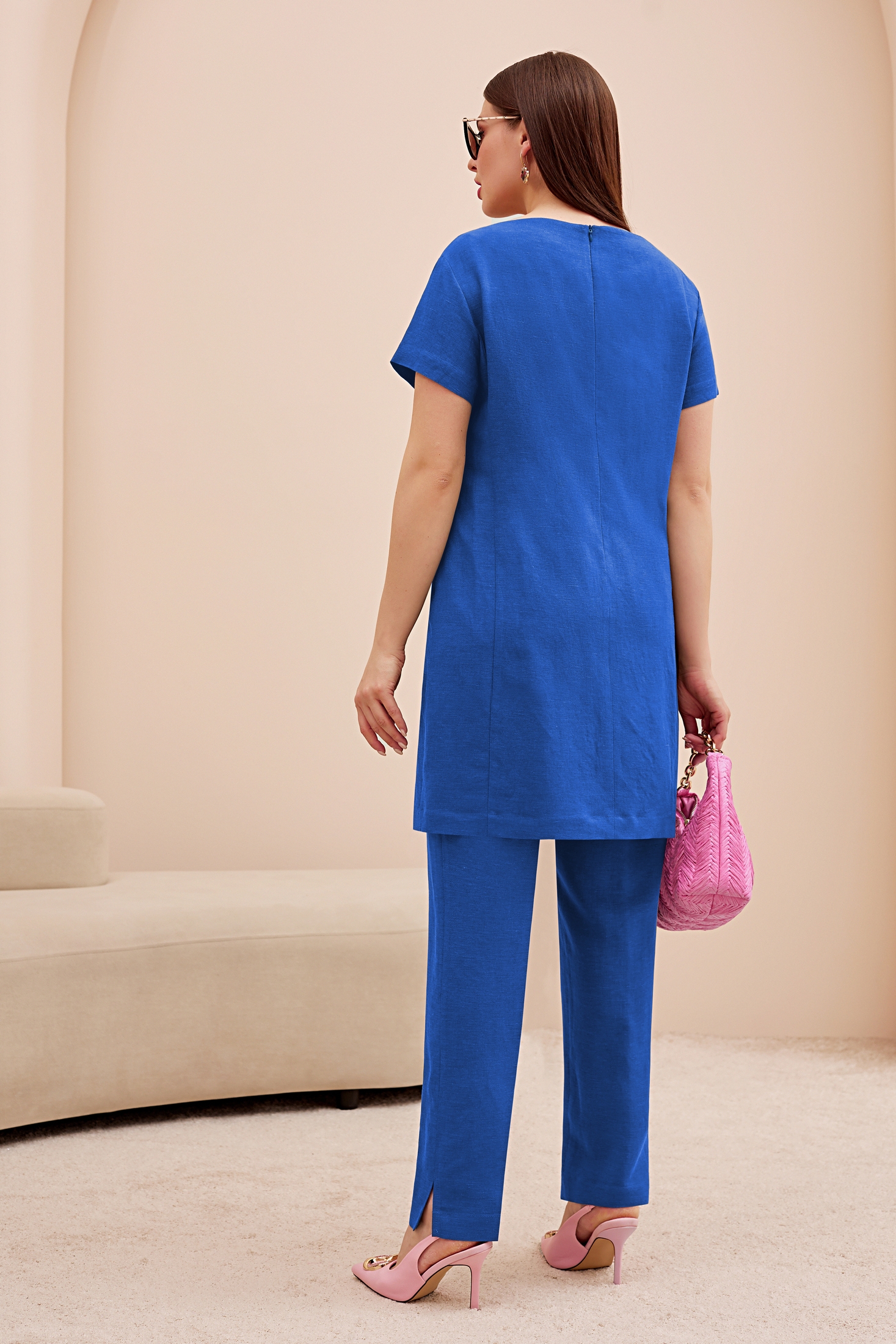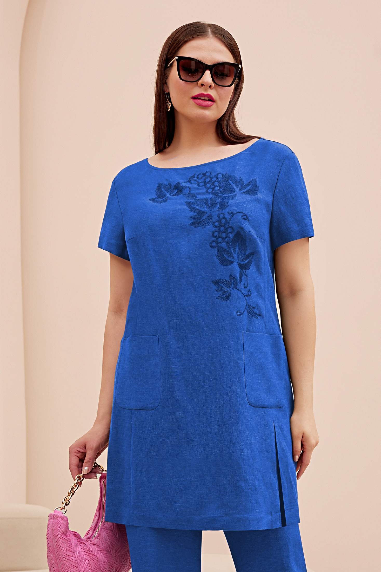 Костюм брючный 4741 синий Lissana — это гармония стиля и комфорта. Коллекция бренда Lissana предлагает комплект, выполненный из натурального льна и вискозы, обеспечивающий легкость и удобство в носке. Удлиненная блузка с эксклюзивной вышивкой цветочного мотива подчеркнет вашу индивидуальность. Прямые брюки средней посадки дополнены практичными разрезами по боковым швам, обеспечивающими свободу движений. Потайная молния на спинке и пояс-резинка добавляют комфорта в использовании. Этот костюм идеально подходит для теплых летних дней и вечерних прогулок, добавляя в ваш гардероб свежие цветовые акценты синего. Прямые линии, накладные карманы и современный фасон делают его отличным выбором для повседневного и стильного образа.