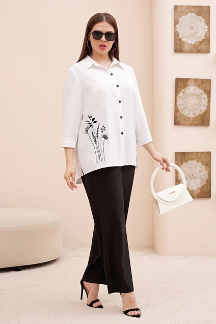 Костюм брючный 4911 Lissana — отличный выбор для современной женщины. Коллекция бренда Lissana предлагает капсульный комплект, состоящий из рубашки-блузки и трендовых широких брюк свободного кроя. Костюм выполнен из материала с содержанием полиэстера, хлопка и вискозы, что обеспечивает комфорт и практичность. Рубашка прямого силуэта с фигурной линией низа и дизайнерской вышивкой придает образу индивидуальность. Втачной рукав с отрезной манжетой и немного приспущенной линией плеча дополняют стиль. Брюки оснащены косыми карманами и отрезным поясом на резинке, что создает удобство в носке. Комплект уместен как в офисном, так и в повседневном гардеробе, легко сочетается как с каблуками, так и с обувью на плоском ходу, идеально подходит для весенне-летнего сезона.