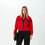 Двубортный жакет полуприлегающего силуэта с застёжкой на две пуговицы с прорезными карманами с листочками и клапанами. Нагрудные вытачки на полочках расположены вертикально и совмещены с талиевыми, заканчиваются входом в карман. Спинка имеет плечевые вытачки, средний шов со шлицей. Рукава двухшовные, длинные. Воротник – стойка переходит в край борта, имеющий V-образную форму. Застежка на прорезные петли и пуговицы. Жакет полностью обработан притачной подкладкой.