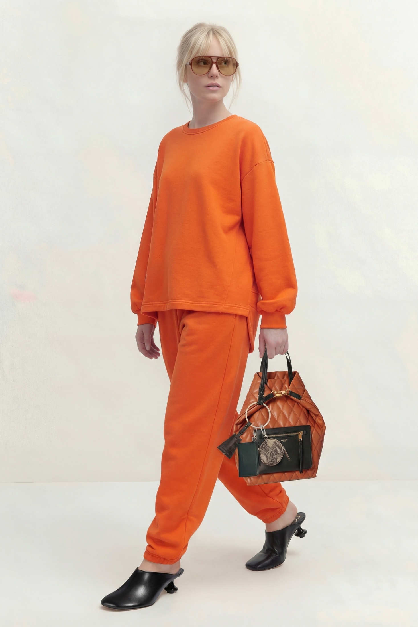 Костюм брючный 1870 Lokka — это идеальный выбор для стильных женщин. Коллекция бренда Lokka впечатляет своим комфортом и продуманными деталями. Костюм выполнен из трикотажного полотна (футер), что гарантирует мягкость и удобство. Джемпер свободного кроя с спущенным рукавом и притачной манжетой обеспечивает свободу движения. Асимметричный низ и косые рельефы на передней части дополняют современный образ. Брюки заужены к низу, оснащены резинкой на поясе и карманами в боковых швах, что делает их практичными и стильными. Длина джемпера по спинке составляет 76 см, длина рукава — 50 см (+20 см плечевой пояс), а длина брюк с поясом — 104 см. Яркий оранжевый цвет добавляет энергии в каждодневный гардероб. Этот костюм идеально подходит для повседневной носки в весенний и осенний сезоны.