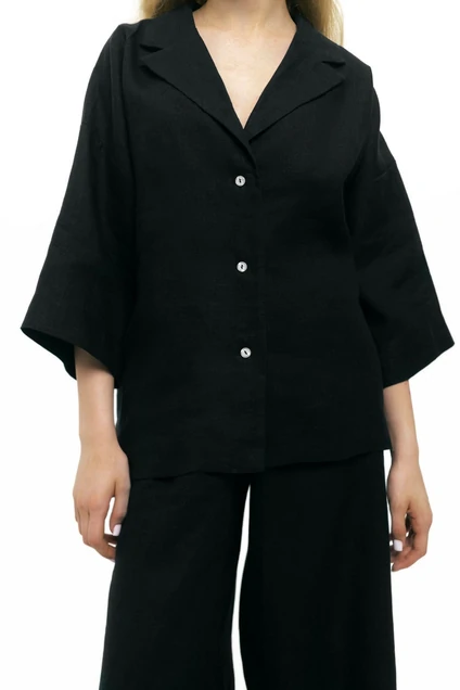 Комплект в пижамном стиле: льняные брюки-палаццо и рубашка из 100 % аэроумягченного льна. Подходит для любого сезона.