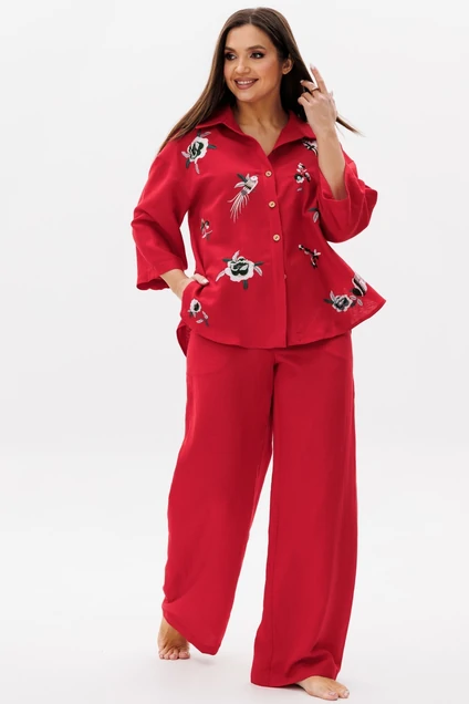 Льняной двухпредметный костюм Ma Cherie, состоящий из рубашки и брюк.
