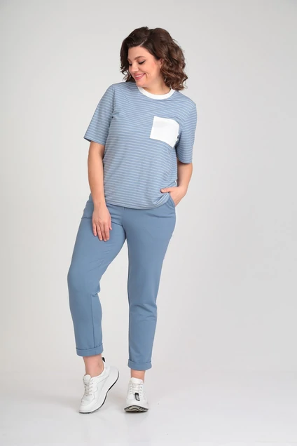 Комфортный летний комплект для активных женщин, прекрасно подойдет как и для спорта, так и для повседневной носки. Футболка свободного кроя, выполнена из мягкой приятной на ощупь ткани. Горловина — кашкорсе, а также по переду на груди карман. Трикотажные брюки с добавлением вискозы прекрасно садятся по фигуре. Универсальный крой, приятные ткани и актуальность изделия - сделают его одним из самых любимых в Вашем гардеробе в наступающем сезоне. Длина брюк по боковому шву 105 +-1 см, шаговому — 71 см. Длина футболки по спинке 64 +-1 см, рукав — 28 см. Изделие также подойдет на рост 170 см. брюки — 71% полиэстер, 25% вискоза, 4% спандекс