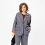 Повседневный брючный костюм из двух предметов — жакет и брюки. Жакет из буклированного однотона, брюки — однотонный вискозный трикотаж. Жакет укороченный с капюшоном и объемными рукавами, по переду застегивается на асимметричную застежку — молнию, имеются карманы. Спинка цельная. Края жакета, рукава, борта и капюшона с открытыми срезами и отделочной строчкой. Брюки-бананы свободного кроя, длина 7/8, пояс притачной на резинке, в боковых швах карманы. Низ брюк — цельнокроеная манжета с отворотом на лицо. Брюки украшены нашивкой. Оба изделия смело можно сочетать с другими вещами вашего гардероба. Длина изделия по спинке 57см(+-1 см), длина рукава от горловины 61 см/(+-1 см); длина брюк по боковому шву 97см(+-1 см), по шаговому 65см(+-1 см). Изделие подойдет на рост 170см.