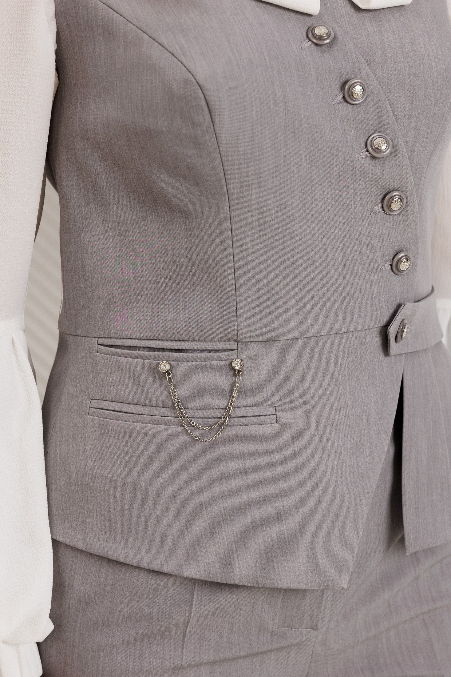 Костюм брючный 26-2912 сталь Мода-Юрс сочетает в себе стиль и функциональность. Коллекция бренда Мода-Юрс предлагает элегантный комплект, состоящий из жилета и брюк. Жилет полуприлегающего силуэта с рельефами и асимметричным нижним краем изготовлен из прочного материала с добавлением вискозы, что обеспечивает комфорт и долговечность. Двубортная застежка и прорезные карманы добавляют изысканные акценты. Брюки прямого кроя с притачным поясом и резинкой на спинке идеальны для офиса и деловых встреч. Стильный серый цвет подчеркивает утонченность костюма, который идеально подойдет для демисезонного времени. Длина жилета — 56,4 см, а брюк — 107 см, что делает их универсальным выбором для создания разнообразных образов.