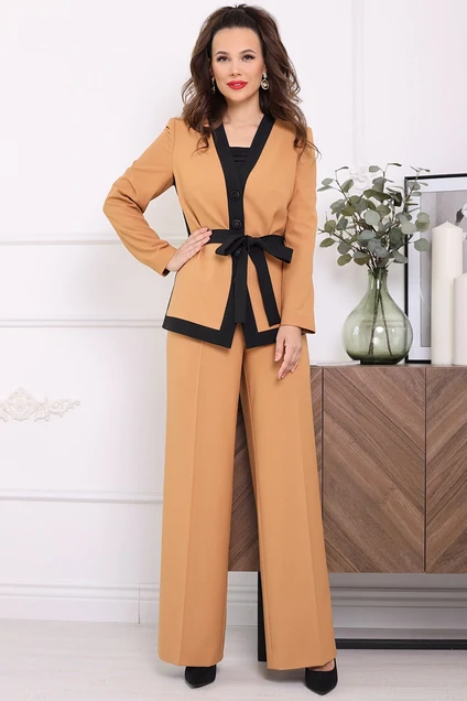 Костюм брючный 2696 бежевый + черный Мода-Юрс
