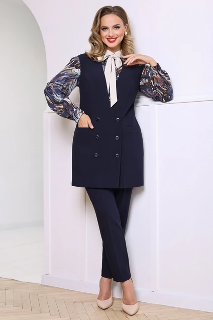 Костюм брючный 2765 синий + геометрия Мода-Юрс