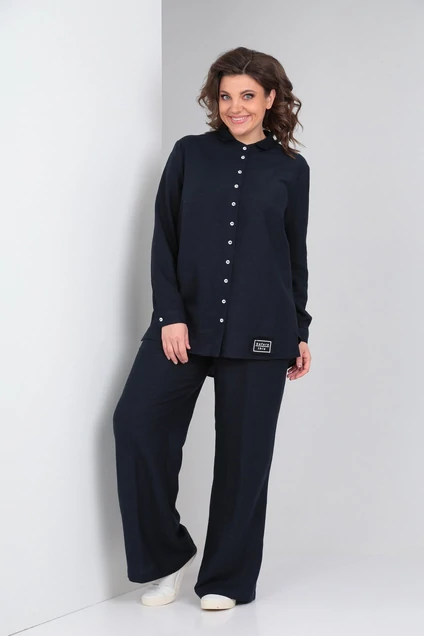 Стильный женский костюм выполнен из натуральной льняной ткани (не тянется), состоит из блузы и брюк.