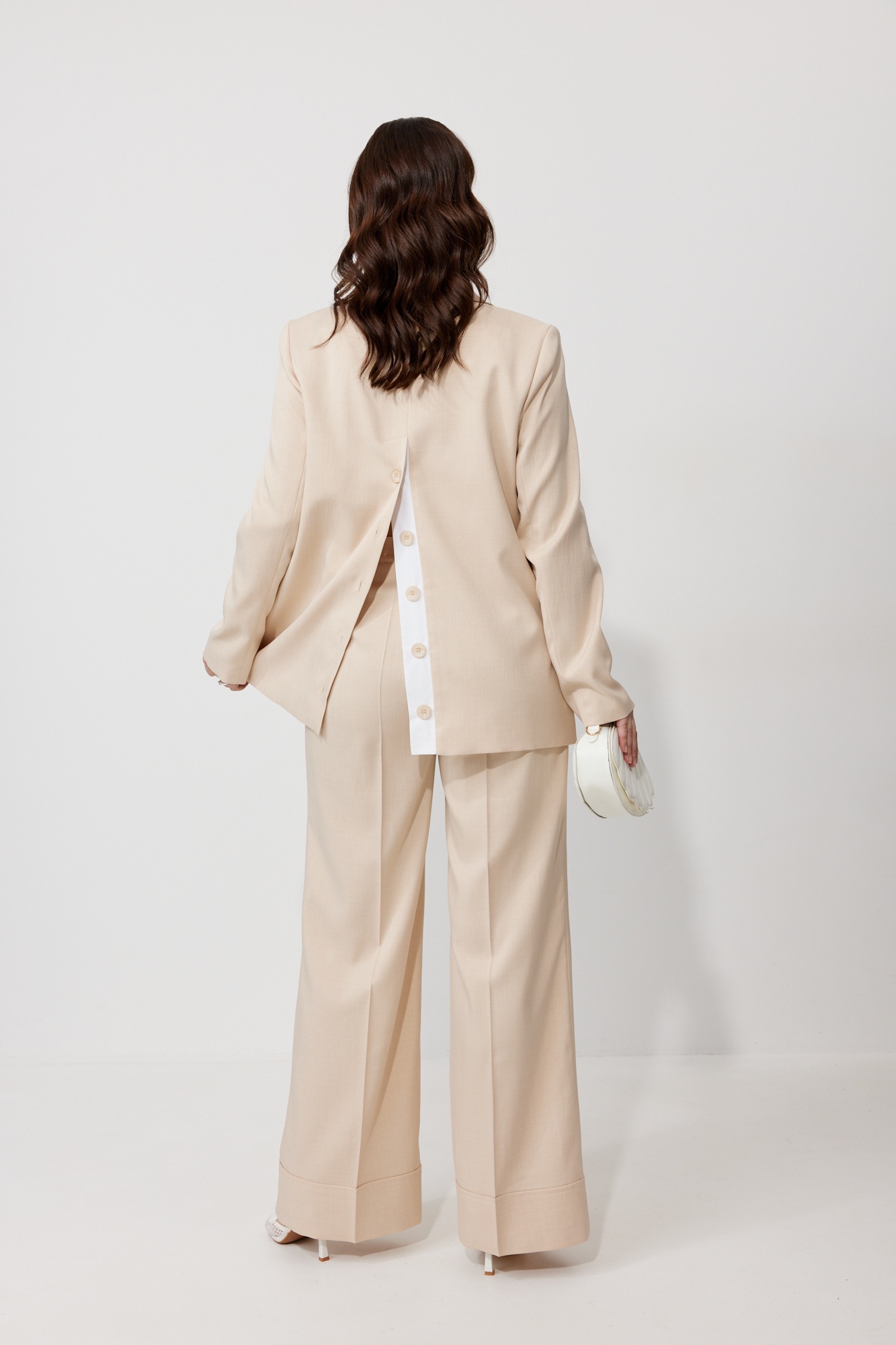 Костюм брючный 190 бежевый Мублиз предлагает стиль и комфорт в повседневной жизни. Коллекция бренда Мублиз включает в себя жакет и брюки, выполненные из комфортной вискозной ткани с добавлением полиэстера и спандекса, что обеспечивает легкость и эластичность. Жакет на подкладке прямого кроя с центральной двубортной застежкой и функциональными карманами подойдет для делового стиля. Отделочные детали, такие как съемный цветок, добавляют изысканности. Брюки с высокой посадкой и отрезными манжетами невероятно удобны для носки в теплый сезон. Бежевый цвет делает костюм идеальным выбором для офисных и праздничных мероприятий.