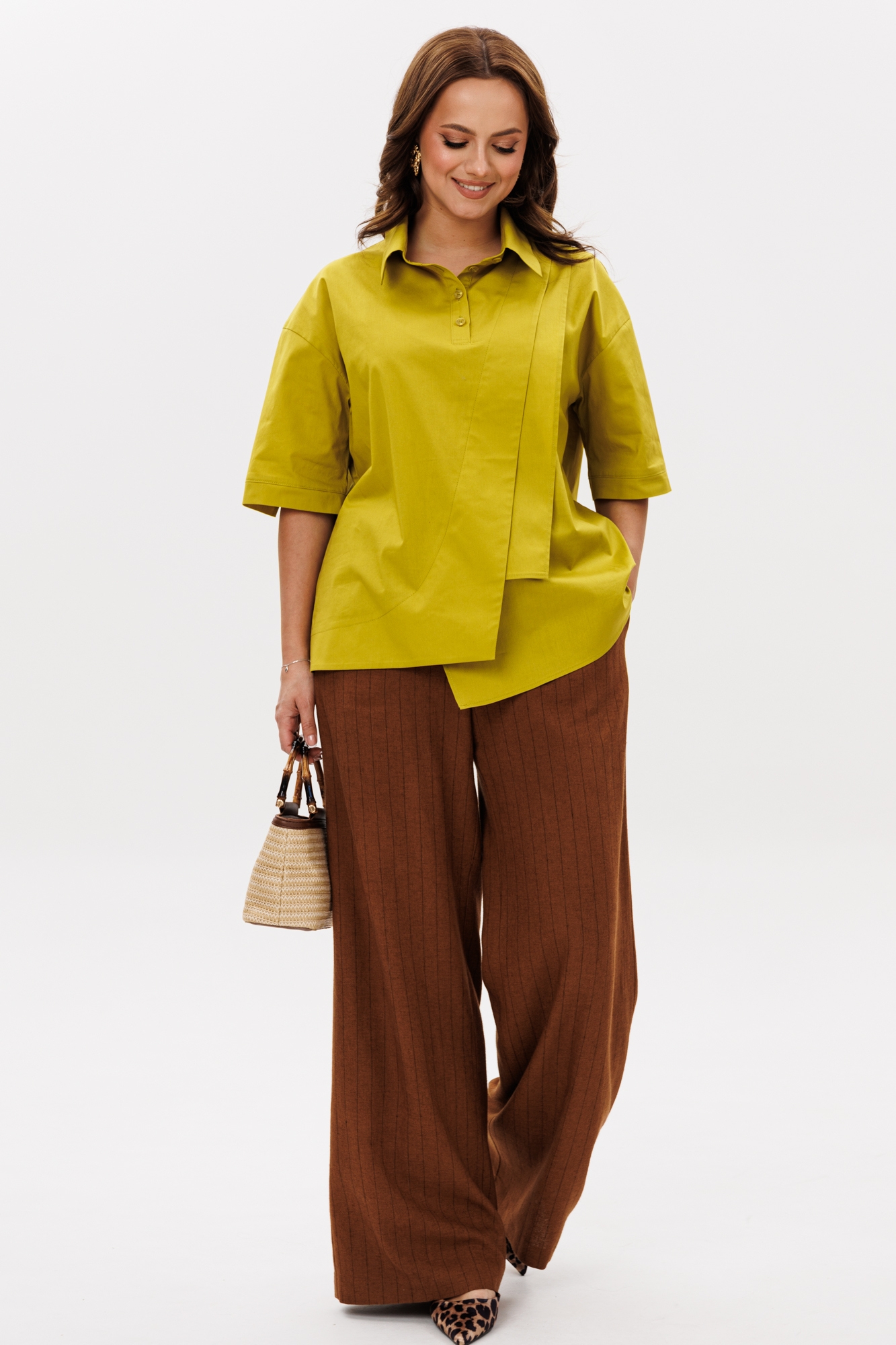 Стильный женский комплект, состоящий из блузы и брюк.