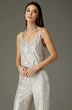 Топ: полуприлегающего силуэта, выполнен из трикотажного полотна с эффектом «пайеток», на подкладке. Вырез горловины «V»-образный, с регулируемыми бретелями по длине.