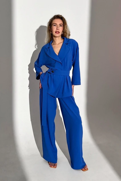 Модель можно моделировать с блузой. Жакет и брюки комбинировать по отдельности.