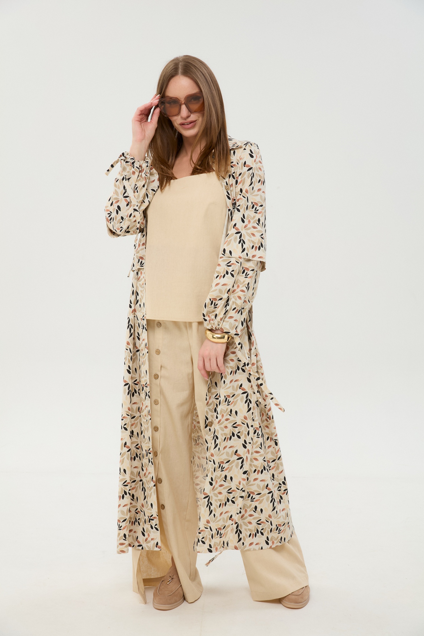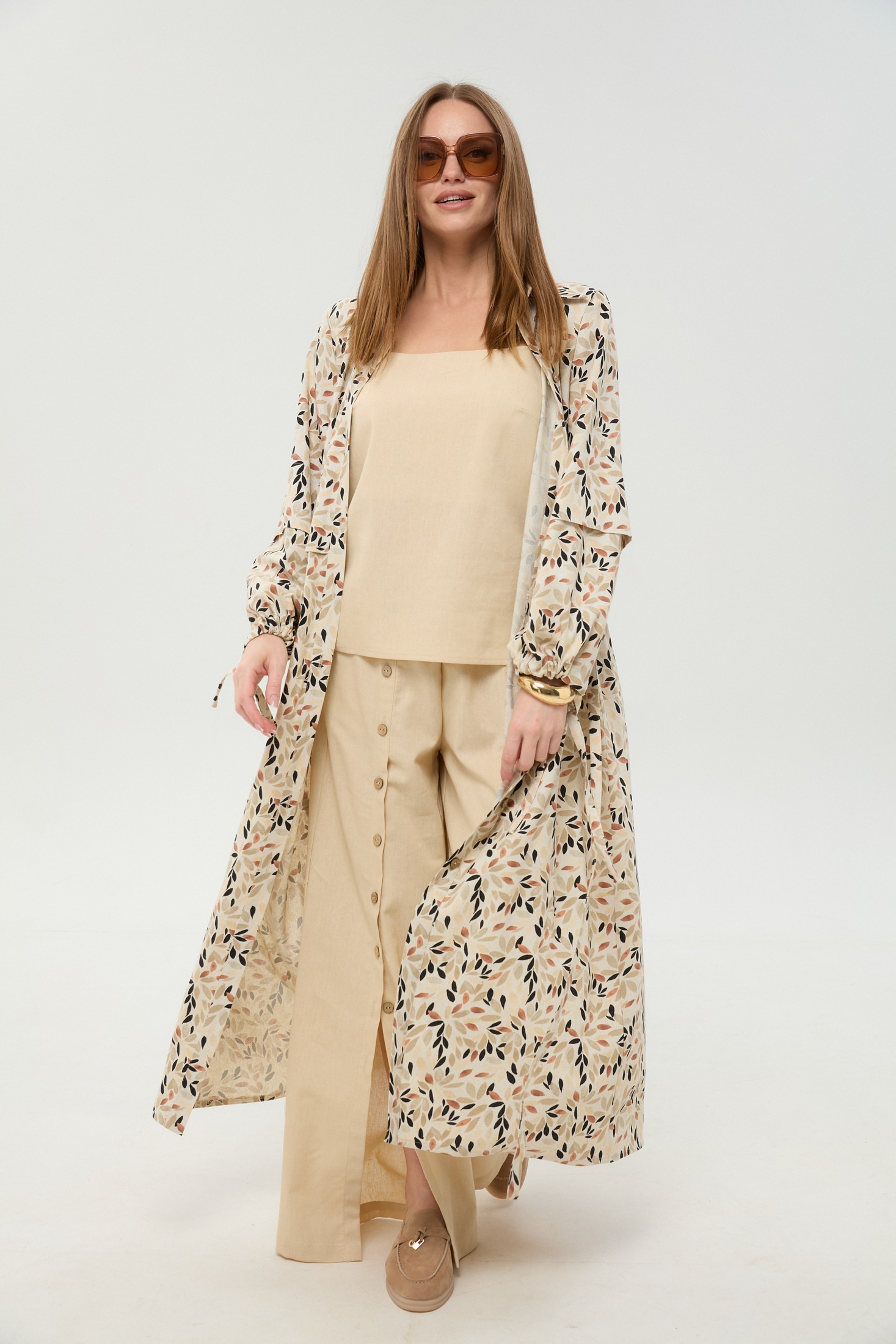 Костюм брючный 976-12 песок и песок мультиколор NikVa — это уникальное сочетание стиля и удобства. Коллекция бренда NikVa включает три предмета: кардиган-платье, свободные брюки и топ на тонких регулируемых бретелях. Изготовлен из смеси льна, вискозы и хлопка, обеспечивая комфорт и легкость. Кардиган макси с оригинальной застежкой и цельнокроеными складками подходит для прохладного летнего вечера. Брюки с широкой резинкой и карманами добавляют функциональности, а пояс позволяет регулировать объём. Нежный цвет песок и мультиколор с принтом придаёт свежесть образу. Подходит для летних прогулок и повседневного ношения.