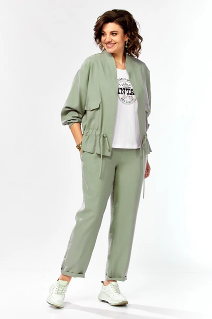 Костюм брючный 1011 серо-зеленый Ольга Стиль