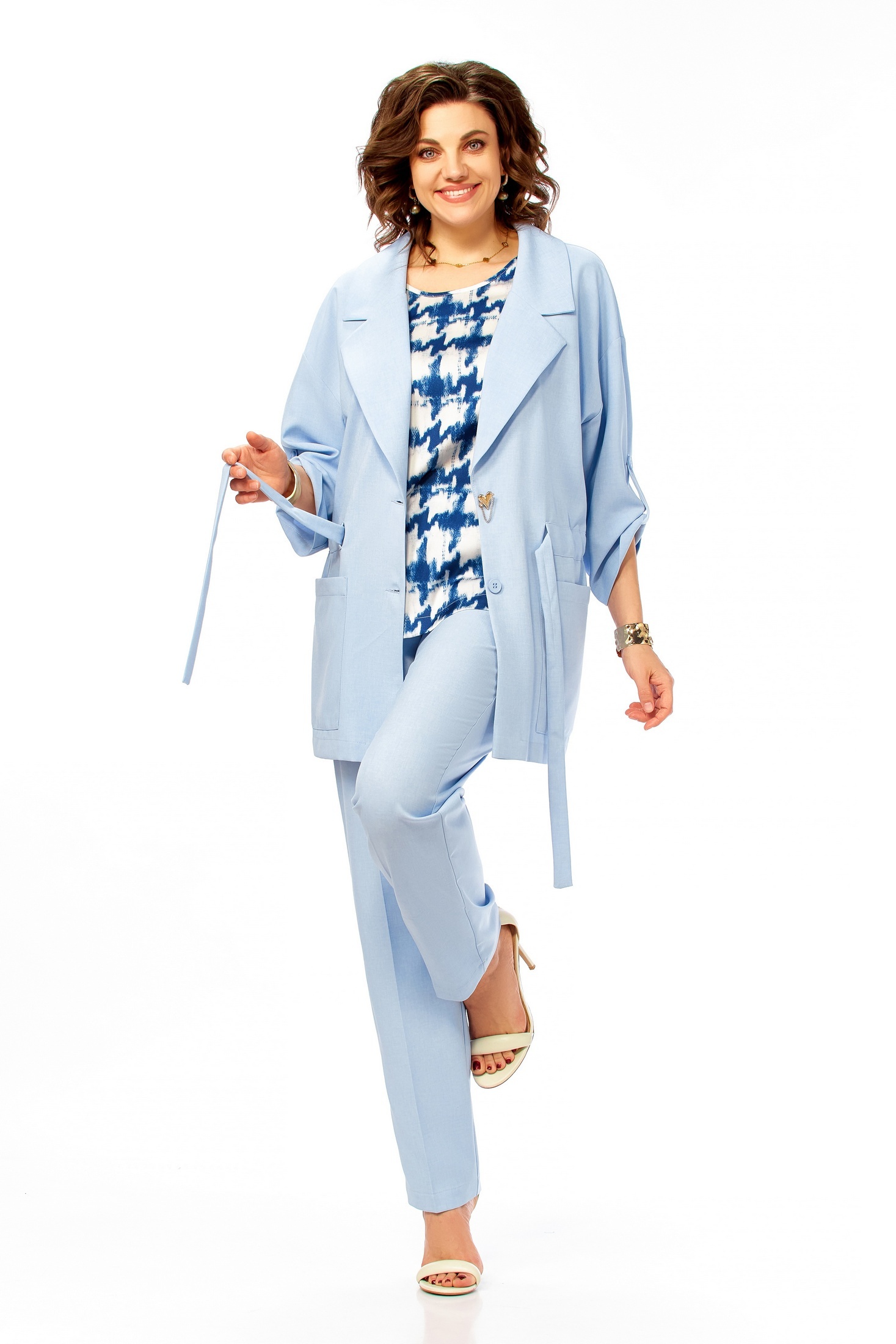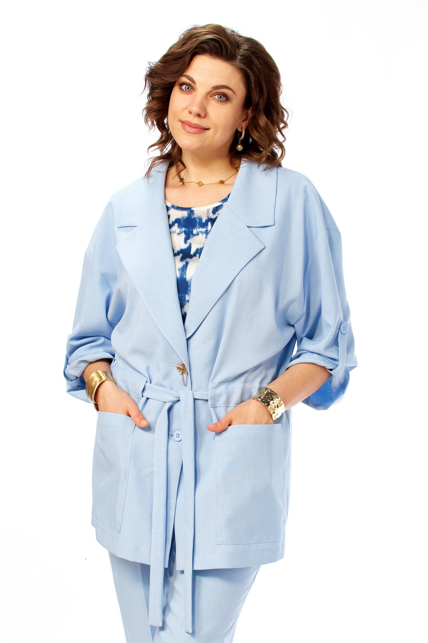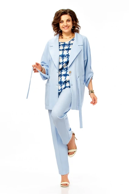 Костюм брючный 1012 голубой Ольга Стиль предлагает свежий взгляд на классические костюмы. Коллекция бренда Ольга Стиль представлена элегантным сочетанием жакета и брюк, выполненных из льна и вискозы, что гарантирует комфорт и стиль на протяжении всего дня. Жакет с прямым силуэтом, спущенной линией плеча и декоративной пуговицей, подчеркнёт вашу индивидуальность. Карманы и пояс на талии добавляют функциональности и утончённости. Брюки выполнены с резинкой по поясу для комфортной посадки. Яркий голубой цвет усиливает ощущение свежести, делая костюм идеальным для весенне-летнего сезона. Длина жакета — 76 см, брюк — 108 см. Идеальный выбор для офисного гардероба или стильной прогулки в городе.