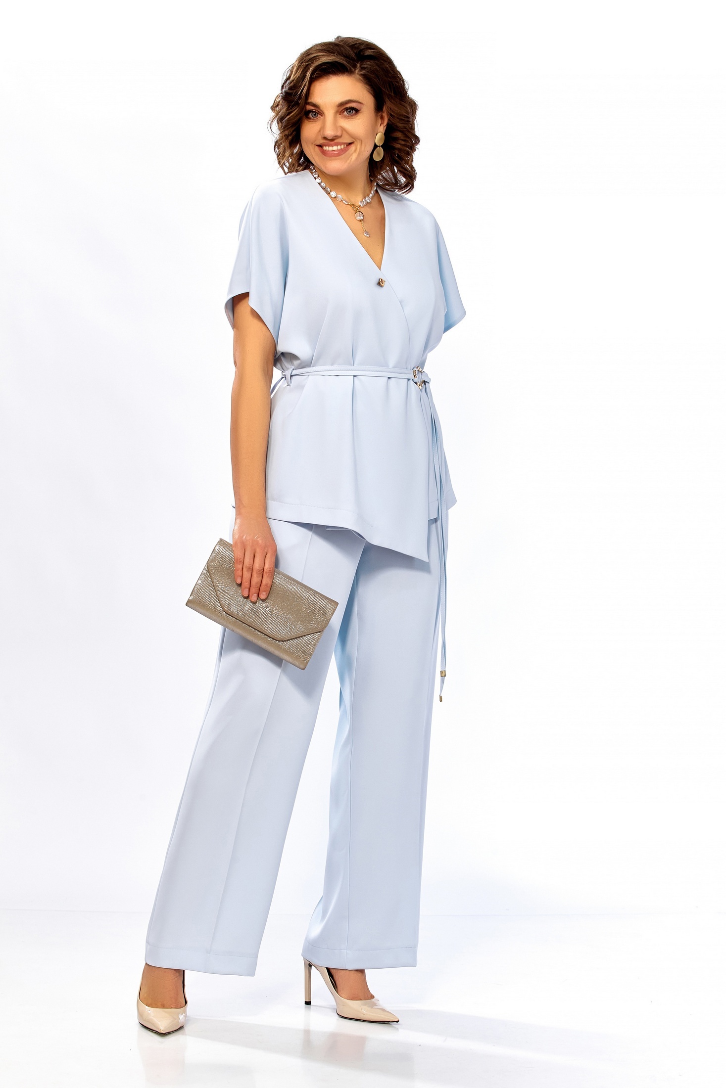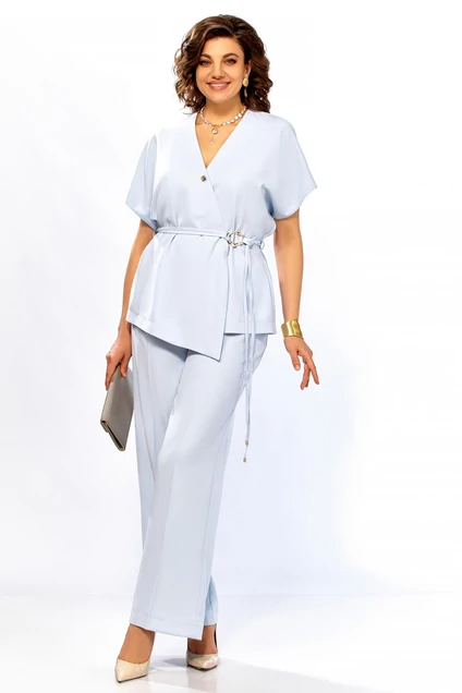 Костюм брючный 1020 голубой Ольга Стиль