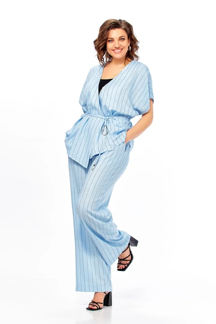 Костюм брючный 1023 голубой + полоска Ольга Стиль