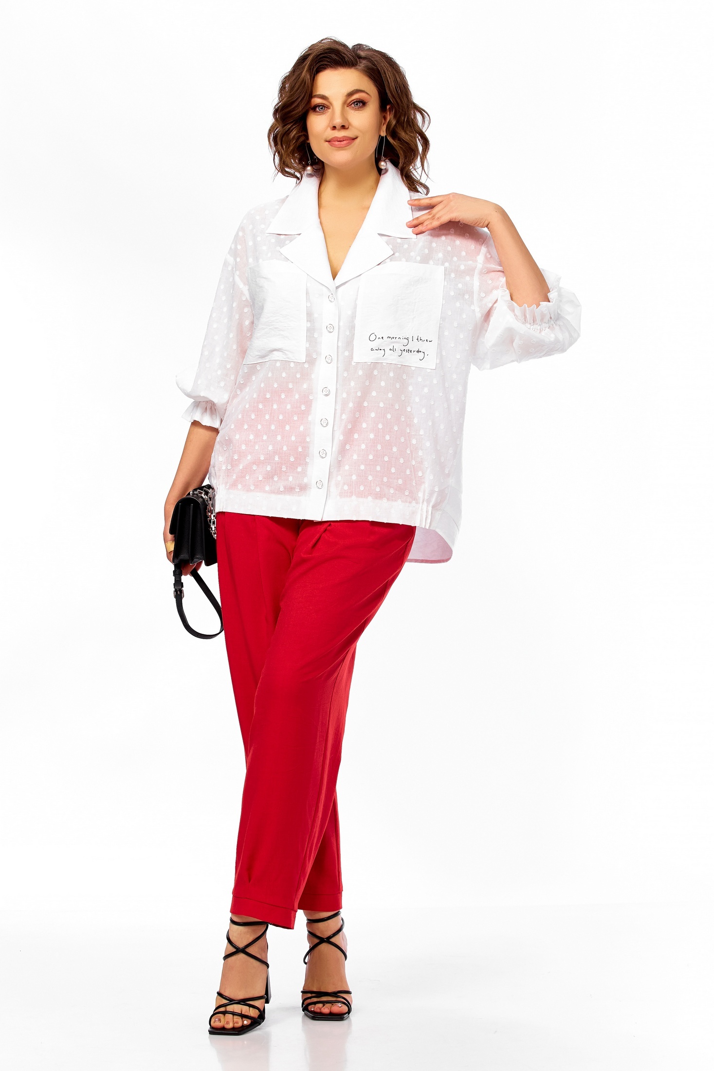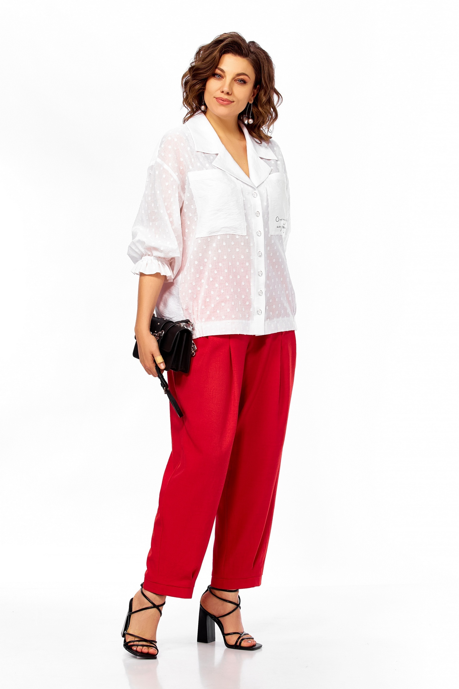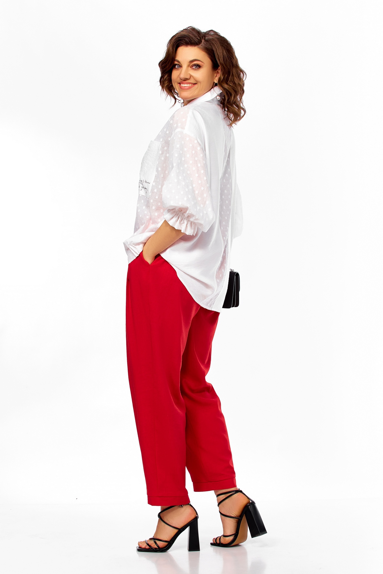 Костюм брючный 1024 белый + красный Ольга Стиль