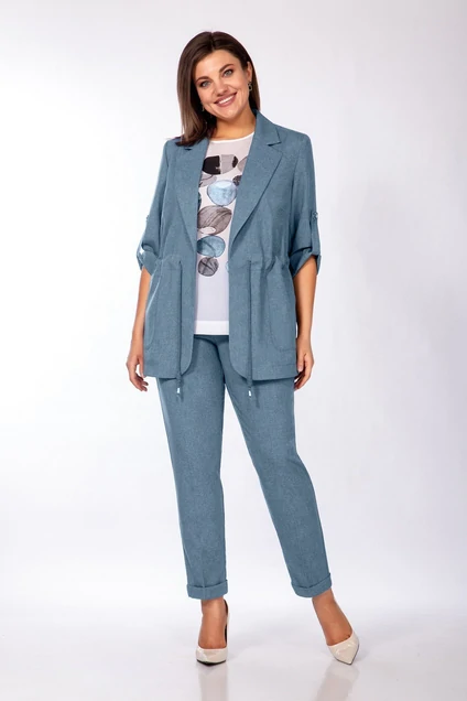 *Костюм брючный 748-1 серо-бирюзовый Ольга Стиль