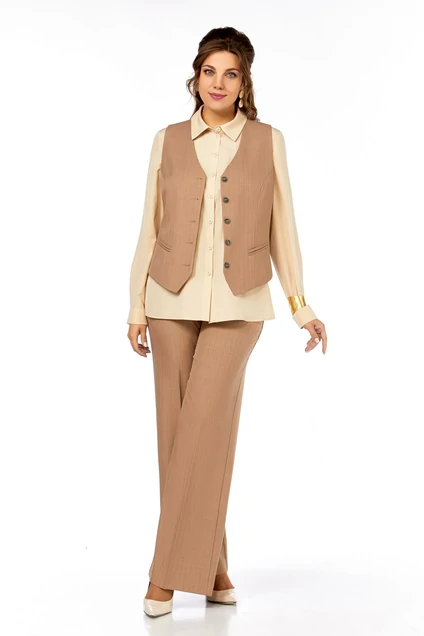 Костюм брючный 946 светло-коричневый Ольга Стиль