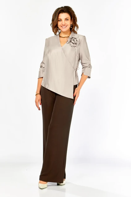Костюм брючный 968 бежево-кричневый Ольга Стиль