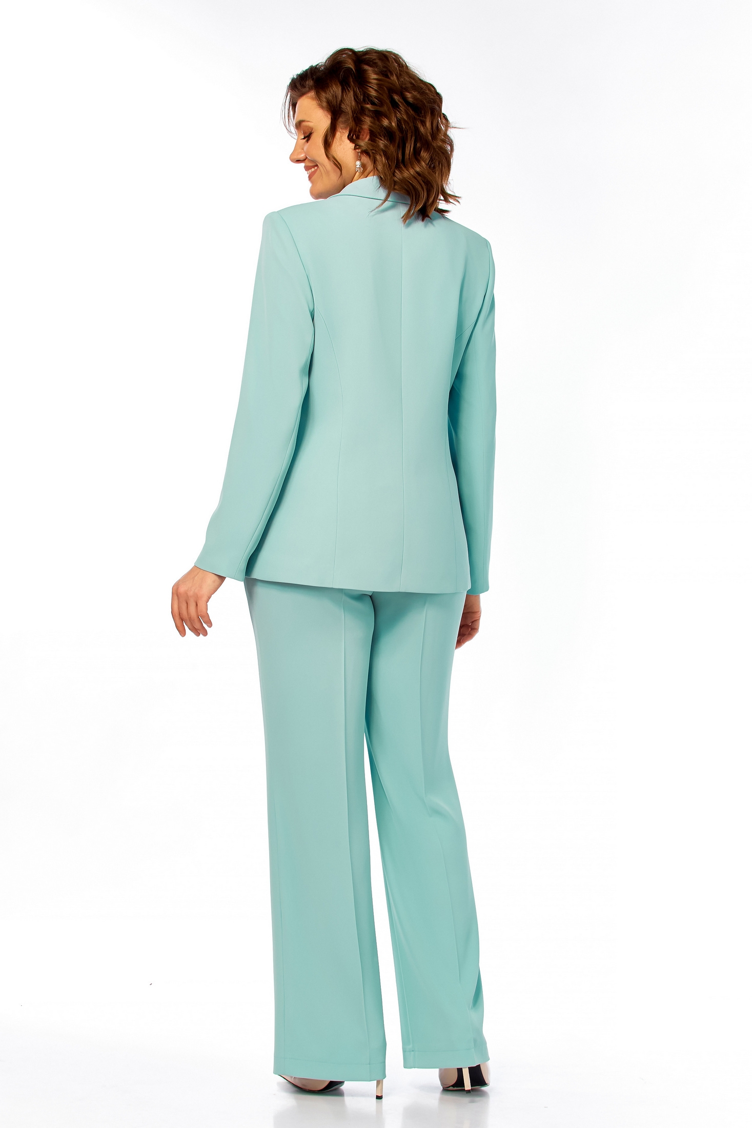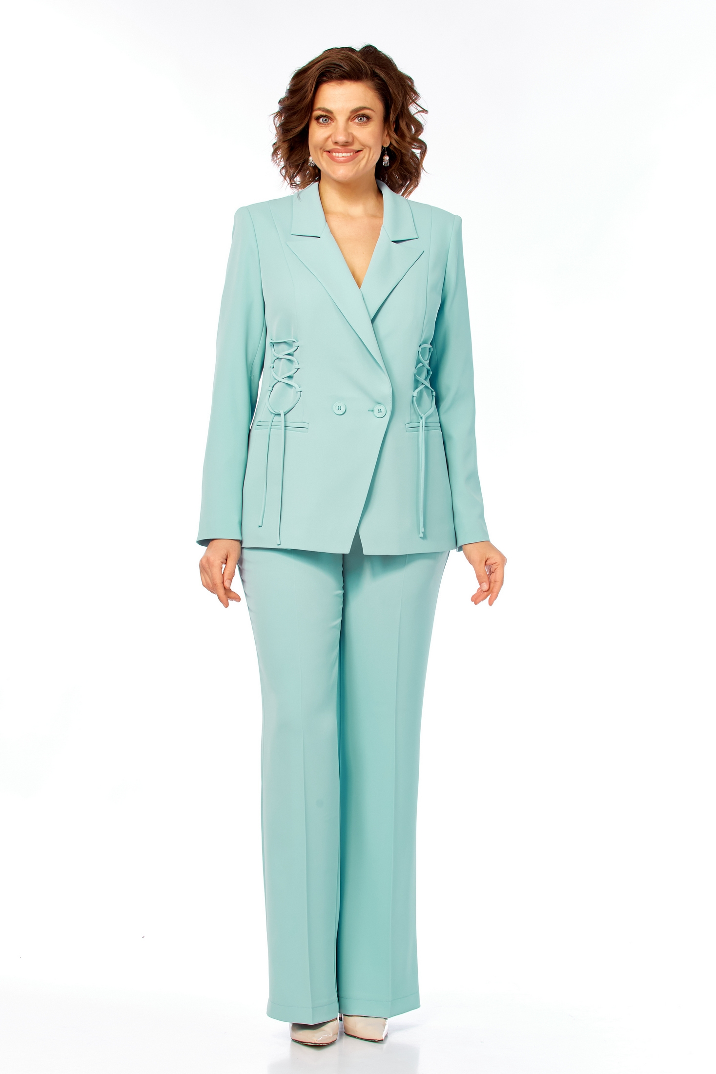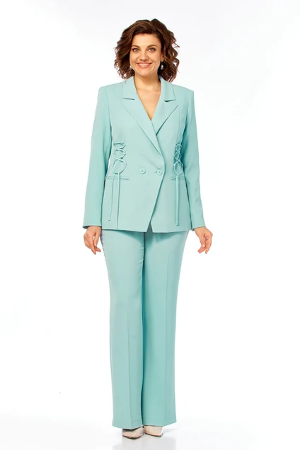 Костюм брючный 998 мятный Ольга Стиль — это стильное и практичное решение для офисных будней. Коллекция бренда Ольга Стиль сочетает в себе современный дизайн и комфорт. Костюм выполнен из материалов с добавлением полиэстера, вискозы и эластана, что обеспечивает отличную посадку и носибельность. Мятный цвет добавляет свежести и лёгкости. Жакет на подкладке с классическим пиджачным воротником и декоративной шнуровкой по переду. Длина жакета составляет 67 см, а брюки с поясом и застёжкой на молнию длиной в 112 см. Двухшовные длинные рукава (61,5 см) и лёгкий клёш брюк подчёркивают элегантность силуэта. Идеальный вариант для прохладных весенних и осенних дней.