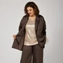 Комплект женский, состоящий из жакета и брюк, выполнен из однотонной костюмно-плательной ткани.