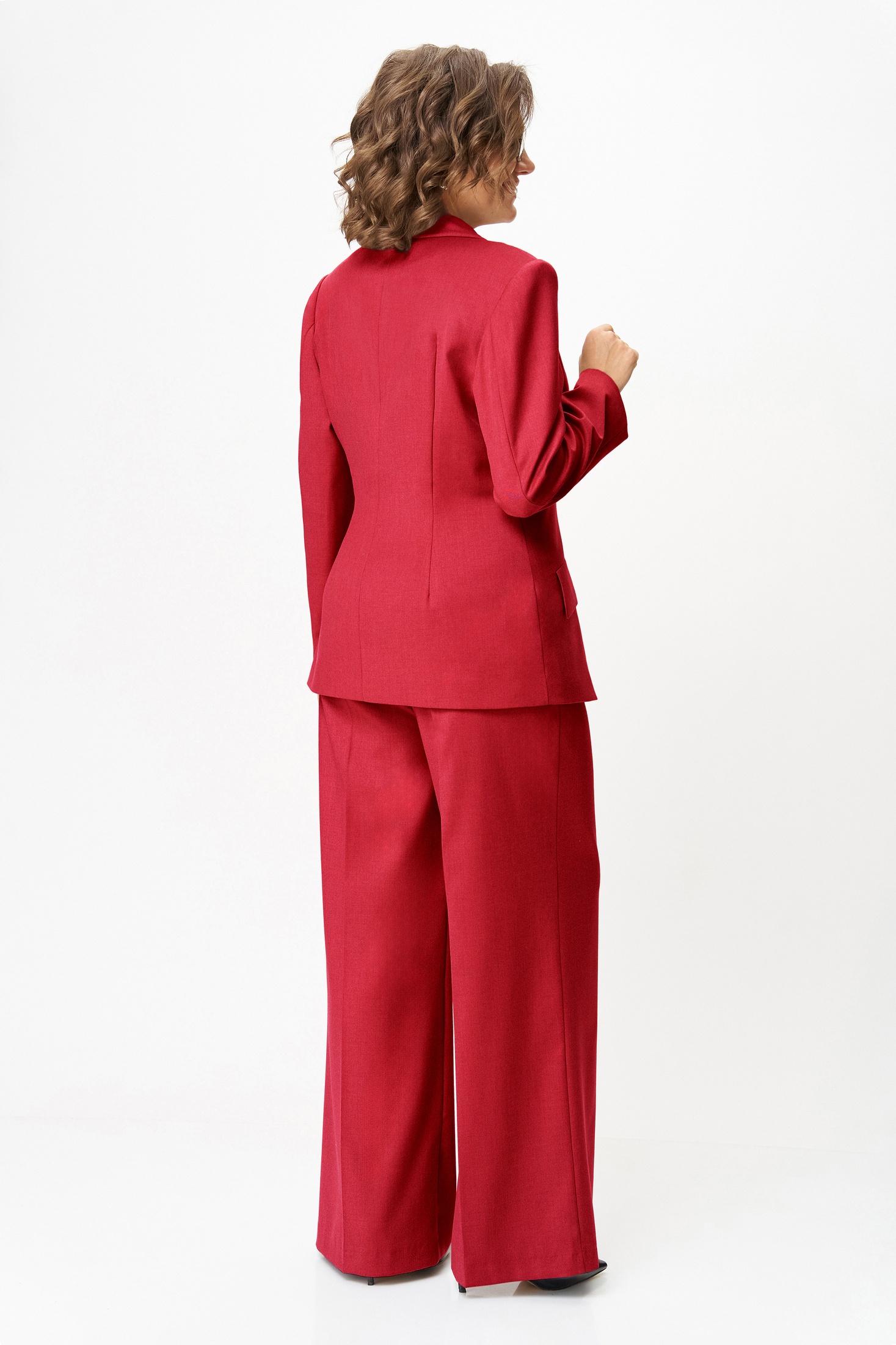 Комплект женский, состоящий из жакета и брюк, выполнен из костюмной ткани.
