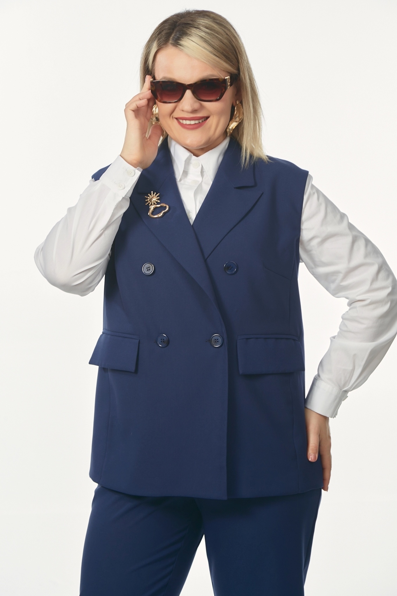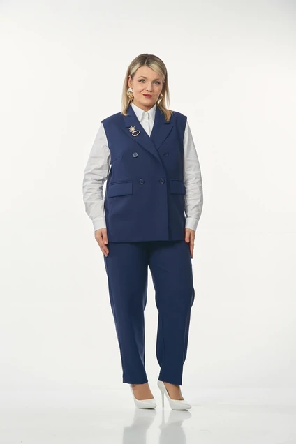 Костюм брючный 241 синий OVERYOU — стильный офисный ансамбль от коллекции бренда OVERYOU. Этот комплект включает удлинённый жилет и прямые брюки на высокой посадке с удобными карманами. Жилет дополнен пиджачным воротником и декоративными пуговицами. Ткань, состоящая из полиэстера, вискозы и эластана, обеспечивает комфорт и свободу движений благодаря своим тянущимся свойствам. Съемные брошки под золото и накладные карманы добавляют модные акценты. Комплект в универсальном синем цвете идеально подходит для повседневной носки и офисного стиля. Можете комбинировать с рубашками и футболками для создания различных луков сезона: весна-осень.