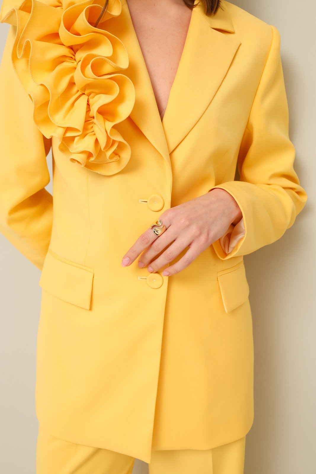 Эффектный 2-предметный комплект, состоящий из жакета и брюк, выполненный из костюмной ткани.