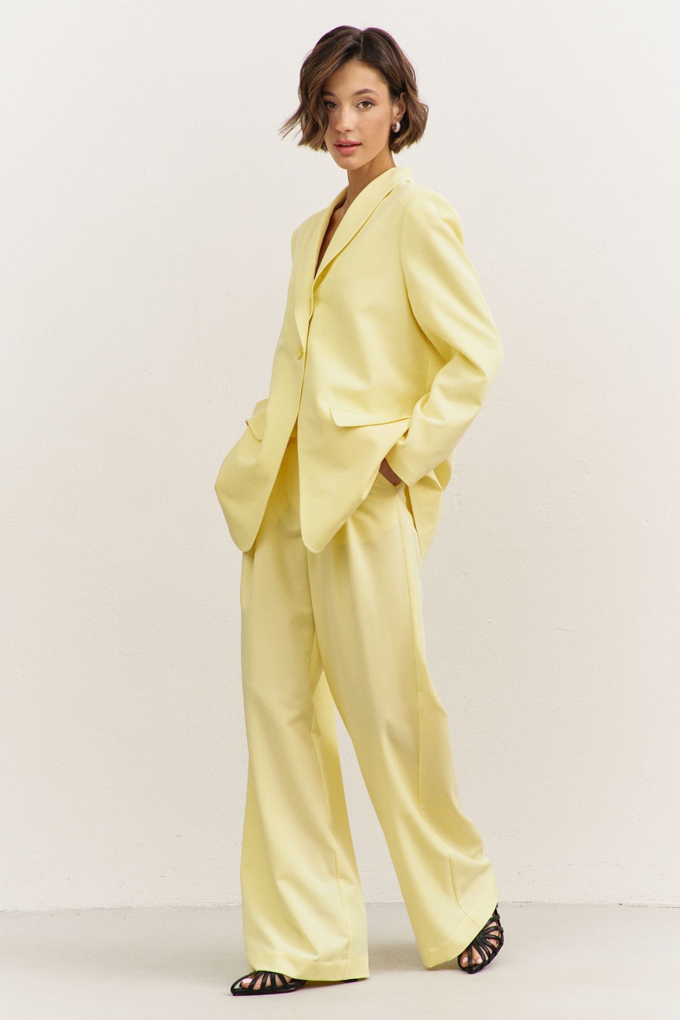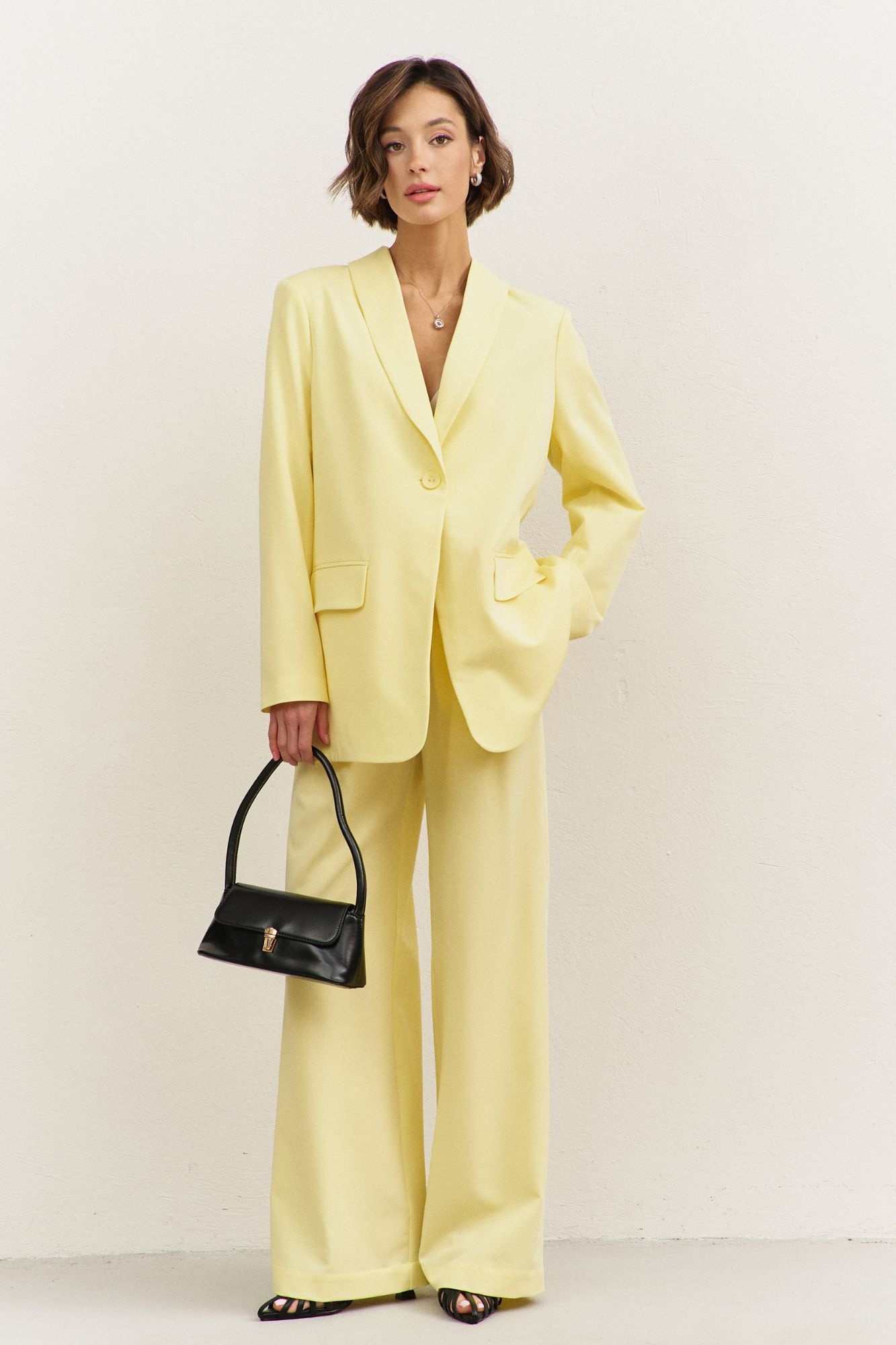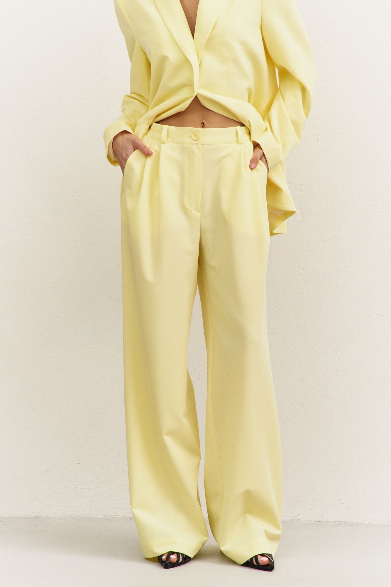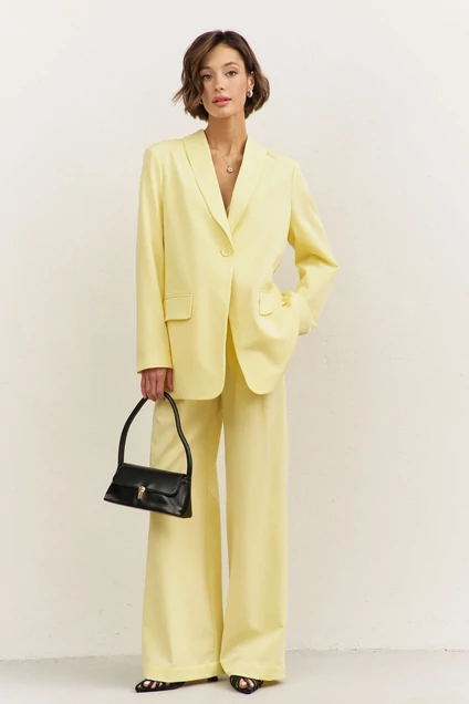 Костюм брючный 1483-1 RINKA - стильный выбор для современных женщин. Коллекция бренда RINKA представляет костюм, выполненный из костюмной ткани с содержанием 65% вискозы, 32% полиэстера и 3% спандекса, что обеспечивает комфорт и эластичность. Жакет прямого силуэта, длиной ниже линии бедер, с высокой шлицей на спинке и шалевым воротником. Длинные двушовные втачные рукава и плечевые накладки подчеркивают классический стиль. Брюки свободного кроя с резинкой по спинке дополняют офисный образ. Жакет на подкладке делает костюм подходящим для прохладной погоды. Светло-желтый цвет добавляет яркости и свежести. Идеально подходит для офисных будней и деловых встреч.