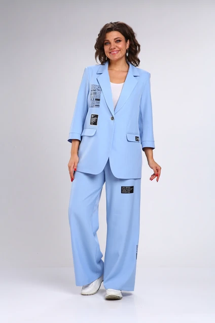 Комплект женский двухпредметный, состоящий из жакета и брюк. Стильный и непринужденный образ, который подчеркнет хрупкость и утонченность, скроет несовершенства фигуры. Комплект отлично подойдет как для повседневной носки, так и для праздничных выходов, достаточно дополнить его соответствующими аксессуарами. Предметы комплекта легко будут сочетаться с вещами из Вашего гардероба.