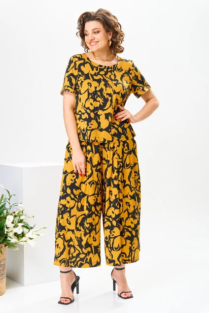 Костюм брючный 2-2704 чёрный жёлтый Romanovich style