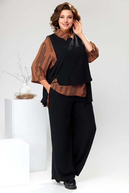 Костюм брючный 3-2510 чёрный + кэмел Romanovich style