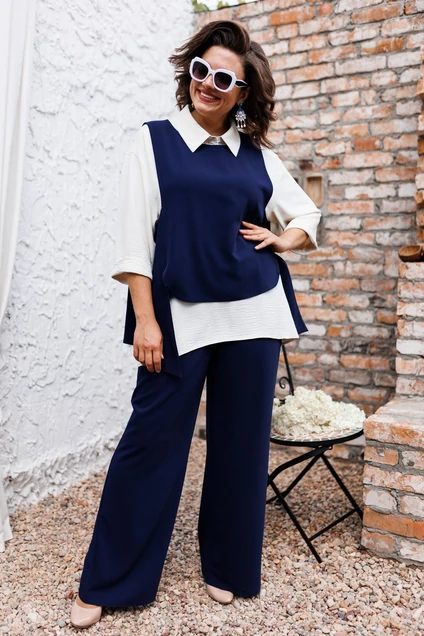 Костюм брючный 3-2510 синий + белый Romanovich style